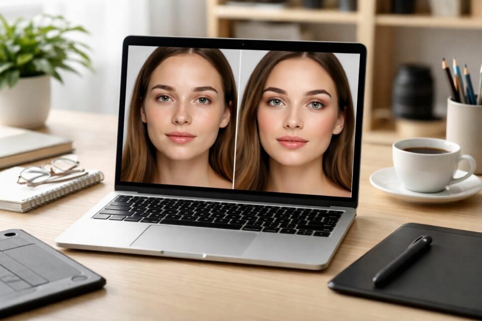 - Amélioration de la texture : Élargissement ou affinage de la texture de la peau pour éviter l’apparence de peau plastique.