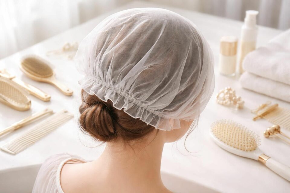 Avant d’enfiler la charlotte, il est conseillé de démêler les cheveux de manière délicate. Cela minimise les risques de casse lors du port de la charlotte. Une fois les cheveux démêlés, on peut appliquer un sérum ou une huile avant de mettre la charlotte. Ce geste simple crée une barrière protectrice supplémentaire pendant la nuit.